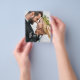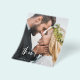 Budget Wedding Handwritten Thank You Cards that have a photo on the front and back. The Thank you cards contain a modern white and Black hand lettered cursive script typography that are elegant, simple and modern to use after you minimalist simple wedding day celebration.