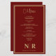 Crafted with sophistication in mind, our personalised dinner menu features a deep, rich hue of dark red accented with luxurious gold detailing. The elegant design showcases your custom monogram, adding a personalised touch that sets the tone for an unforgettable evening.