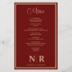 Elevate your rehearsal dinner to a culinary masterpiece with our Dark Red and Gold Wedding Monogram Customised Rehearsal Dinner Menu. This exquisite menu not only tantalises taste buds but also adds a touch of elegance to your pre-wedding celebrations.