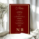 Perfect for engagement parties, rehearsal dinners, or wedding receptions, our Dark Red and Gold Wedding Monogram Customised Rehearsal Dinner Menu adds a touch of opulence to any event. Make every moment memorable with a menu that reflects your impeccable taste and style.