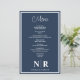 Crafted with attention to detail, these custom menus feature a timeless navy blue and white colour scheme, exuding classic charm and refinement. Your personalised wedding monogram adds a touch of bespoke elegance, infusing your event with a sense of individuality and style.