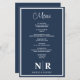 Introducing our Navy Blue And White Wedding Monogram Customised Rehearsal Dinner Menu – the perfect blend of elegance and personalisation for your pre-wedding festivities. Elevate your rehearsal dinner, engagement party, or wedding reception with a touch of sophistication that leaves a lasting impression on your guests.