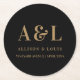 Wedding Monogram Minimalist Black Gold Round Paper Coaster