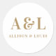 Wedding Monogram Minimalist White Gold Classic Round Sticker