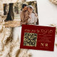 Enhance your wedding stationery with our Dark Red and Gold Wedding Monogram QR Code RSVP With Photo Elegant Enclosure Card, a perfect blend of classic sophistication and modern convenience.