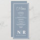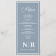 The sophisticated blend of dusty blue and pristine white creates a serene and stylish backdrop, while your personalised wedding monogram takes centre stage, adding a bespoke touch that captures the essence of your celebration. Each menu is crafted with care, offering a seamless blend of simplicity and elegance that complements any event theme.