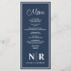 Elevate your special occasions with our Navy Blue and White Wedding Monogram Reception or Engagement Dinner Menus, a perfect blend of elegance and personalisation.