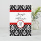 Wedding Monogram Red Damask Invitation Front View