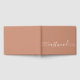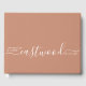 A trendy modern and elegant minimalist couple's name monogram in vintage serif type, contrasted with a handwritten style swash script font on a clay background. Elegant wedding guest book for newlyweds. Blending vintage and modern styles.