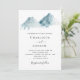 For an eco and micro themed wedding. A white background decorated with watercolored blue grey mountains. Personalise and add your names and the details.