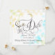 Wedding Invitation Pastel square beach colour (teal blue and yellow sand) with 'Save the Date' in fancy Script Calligraphy - ready to be personalised with details of your wedding date