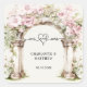 Pink florals on a classic marble arch. Mr and Mrs with a heart. Personalise and add your names and wedding date.