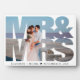 Unique and special keepsake photo plaque for newlyweds featuring your wedding day photo in a frame formed by "Mr & Mrs" in large bold typography. Add your first names and wedding date in simple modern typography.