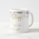 I thought this was really cute to get for my dad. Definitely consider the word "jumbo" in the description and note the oz. the mug is. It turned out to be huge, so much so that my dad probably won't use it for coffee but maybe put on his desk for pens or something. I figured it would be bigger but not to that point, but that's really my fault. I like that I could customize it to add my wedding date at the bottom. Just as it looks online.