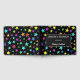 This fun, multicolored guest book design features a pattern of star shapes of various sizes and coloured a variety of colours on a black background. It also features the custom names of the couple who are getting married, and the customised date of the wedding ceremony, within a dark-coloured rectangular area on the front. It could be used by the guests at the wedding to record messages for the newly married couple.