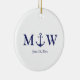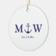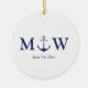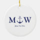 Wedding nautical anchor navy blue white monogram ceramic ornament