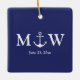 Wedding nautical anchor navy blue & white monogram ceramic ornament