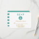 Wedding Nautical Anchor Teal RSVP Gold Card