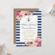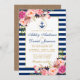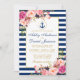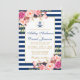 Wedding Nautical Blue Stripes Pink Floral Invite B