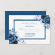 An elegant RSVP card for a wedding with templates for reply by date and names. A faux silver and classic blue frame with watercolored flowers, roses in shades of blue. A chic white background, blue text on front.
