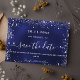 A modern and elegant Save the Date for a wedding. A navy blue background decorated with faux silver sparkles. The blue colour is unveven. Personalise and add a date and names. The text: Save the Date is written with a large trendy hand lettered style script with swashes.