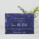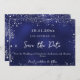 Wedding navy blue silver glitter winter save the date