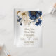 Wedding Navy Blue White Golden Floral Silver Invitation