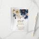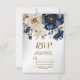 Wedding Navy Blue White Golden Floral Silver RSVP Card