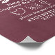 My thoughts on this product was excellent. Well printed in a gloss finishing and just the size l ordered. It arrived in good condition and am overall satisfied with the product. The printing turned out great. I was quite surprised with the finishing touch to the poster. The semi gloss was just right and a perfect size to display at the wedding.