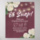 Oh Snap Social Media Hashtag | Wedding Decor Poster Templates - Elegant White lovely Watercolor Hydrangea Flowers and String Lights on Burgundy Red Background.