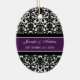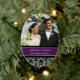 Customisable photo wedding ornament in elegant and modern eggplant dark purple, black and white classic floral damask pattern. Perfect as a christmas keepsake to remember your special day or celebrate your first christmas or as personalised wedding favours.