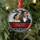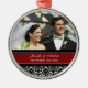 Customisable photo wedding ornament in elegant and modern red, black and white classic floral damask pattern. Perfect as a christmas keepsake to remember your special day or celebrate your first christmas or as personalised wedding favours.