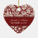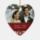 Customisable photo wedding ornament in elegant and modern red and cream off white classic floral damask pattern. Perfect as a christmas keepsake to remember your special day or celebrate your first christmas or as personalised wedding favours.