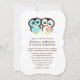 Whimsical and sweet wedding invitations feature a romantic illustration of a cute bride and groom owls. Custom colours available by request.