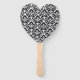 This wedding paddle fan is shown with a elegant black and white damask print and sample names and date.