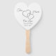 This paddle fan is shown in a lovely heart shape with silver tone crystal hearts with silver colour fancy script text with sample names and date, customise and change the names and date to yours. Back side is a light silver colour.