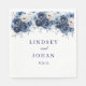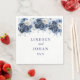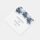 This wedding paper napkin is shown with a lovely deep blue floral mix watercolor print.