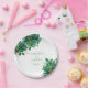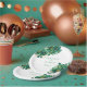 This wedding designed paper plate is shown with a lovely green mix floral print. Text colour is green.