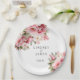 This wedding designed paper plate is shown with a romantic pink peony print.
