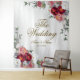 Wedding Party Colourful Red White Floral Silver Tapestry. Unique, beautiful, stylish design. Easy to be personalised. Font style, size and colours can be changed. Matching items available.