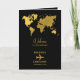 A black and gold destination wedding passport design with gold world map, airplane and travel elements. This design is ideal for all Spring, Summer, Fall and Winter destination weddings. An elegant black and gold wedding travel design with passport layout, world map and custom couple photo. A modern destination wedding order of service program design with elegant elements. Matching wedding invitations and other stationery items are also available.