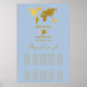 A dusty blue and gold destination wedding passport design with gold world map, airplane and travel elements. This design is ideal for all Spring, Summer, Fall and Winter destination weddings. An elegant dusty blue and gold wedding travel design with passport layout, world map and custom couple photo. A modern destination wedding seating chart design with elegant elements. Matching wedding invitations and other stationery items are also available.
