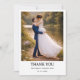 Simple modern photo wedding thank you card with personalised note. This elegant couple template allows you to easily upload your own photo, add your names, and customise your thank you message for friends and family.