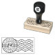 This custom rubber stamp is perfect for wedding save-the-date cards. It features a whimsical take on a mail postmark design, with a little extra wave and hearts and an elegant ampersand in the centre.