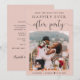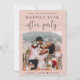 Elegant blush pink save the date announcement for your post-elopement or small wedding reception. The front features your wedding photo and "Save The Date For Our Happily Ever After Party" in a mix of simple typography and a pretty script with swashes. Add your first names and reception date. On the reverse side you can personalise your wedding announcement in more detail and add party or reception details and your names in a signature-like script.