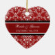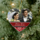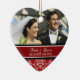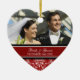 Winter Wedding photo ornament customisable with your own wedding photo and wedding date in elegant red, black and white with classic floral damask pattern. A stylish christmas gift for family and friends or to decorate your christmas tree or home for the holidays. The perfect way to remember your winter wedding day.