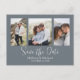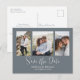 Announce your special day in style with this wedding save-the-date card featuring a photo collage layout and elegant blue accents. The calligraphy script adds a personal, sophisticated touch, while the QR code directs guests straight to your wedding website. A budget-friendly postcard that maintains a simple, minimalist design while offering elegance. Perfect for couples looking to save on wedding costs without compromising style.