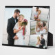 Create your own wedding photo plaque with 4 of your favourite pictures. The photo template is set up to create a photo collage with one main background photo, overlaid with the remaining three photos in a vertical zigzag. Your pictures are displayed in landscape format with black frames.