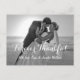 This is classic wedding thank you post card. This card feature is a photo on the front and back. "Forever Thankful " in an elegant white script font, and custom text thank you message that can be personalised. White background on the rear of the cardboard are often tailor-made to a different colour via customise it / Edit / Background.