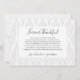Send your wedding thank yous out in style with this beautiful card featuring your photo and a beautiful white script font on the front. On the backside, your custom thank you note is surrounded by an art deco styled pattern. Feel free to delete the typed text to make space for you handwritten note. Modern and trendy yet elegant and classic - the perfect way to say thank you to your wedding guests. Photo credit: Joanna Nix, Unsplash